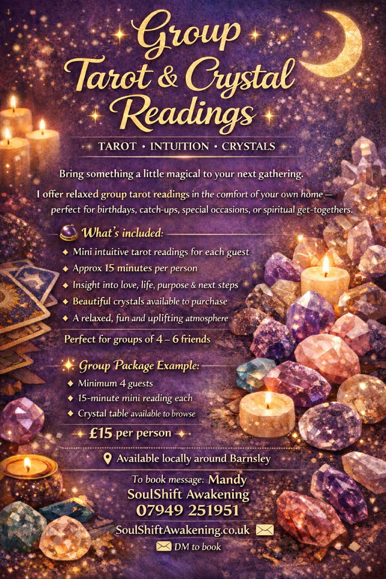 Mini reading party's Barnsley. I offer an exclusive service where I come to you for mini readings. I bring The Crystal shop to your door. All Crystals are genuine and priced so that all can enjoy the power of Crystal energy.